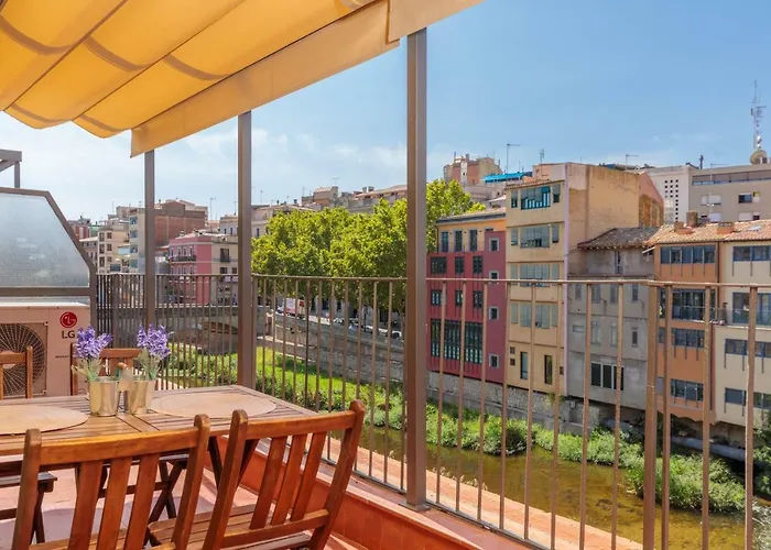 Die 1-Zimmer-Ferienwohnung Flateli Rambla 5 2-1 Gerona bietet Blick auf die Stadt und liegt ca. 15 Minuten zu Fuß von der Kathedrale von Girona entfernt. Die 80 m² großen Apartments mit einer Terrasse befindet sich nur 600 Meter von der Pont de Pedra.
